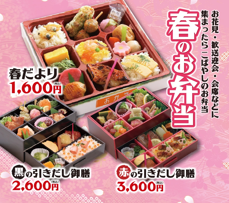 お弁当のこばやしは創業1920年(大正9年)、これからも「おいしさ」と「安全・衛生」、「環境に配慮した取組み」を続けながら、 おいしいお弁当をお届けします。