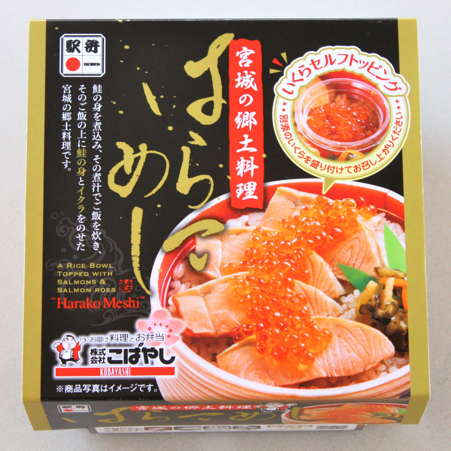 パッケージデザインをリニューアルしました。鮭の身を煮込み、その煮込んだ煮汁でご飯を炊き、そのご飯の上に煮込んだ宮城県産銀鮭の身といくらをのせた宮城の郷土料理です。いくらは別添になっており、お客様ご自身で盛り付けをアレンジしながらお楽しみください。